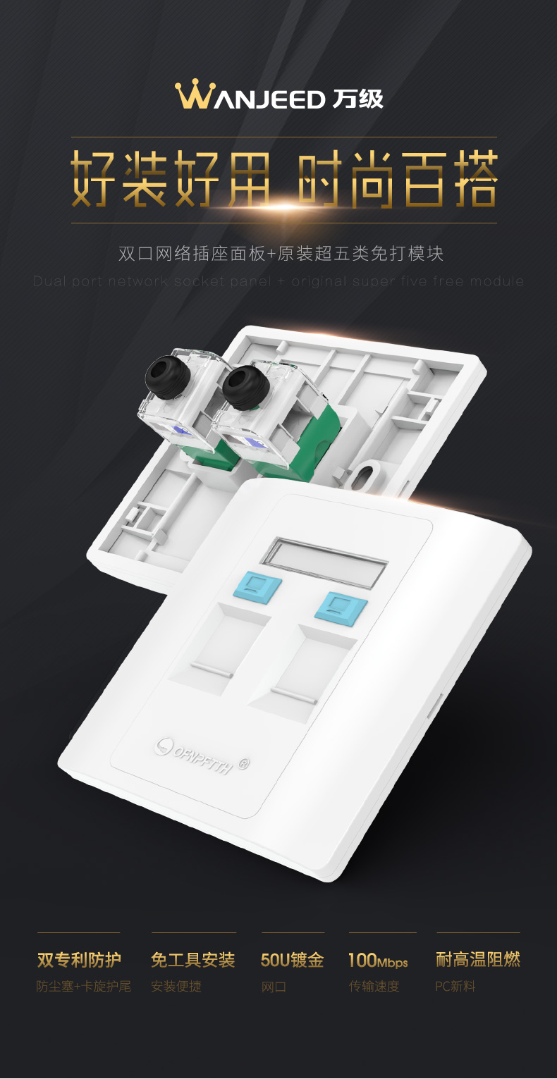 款式: 套裝(面板+超五類免打模塊)