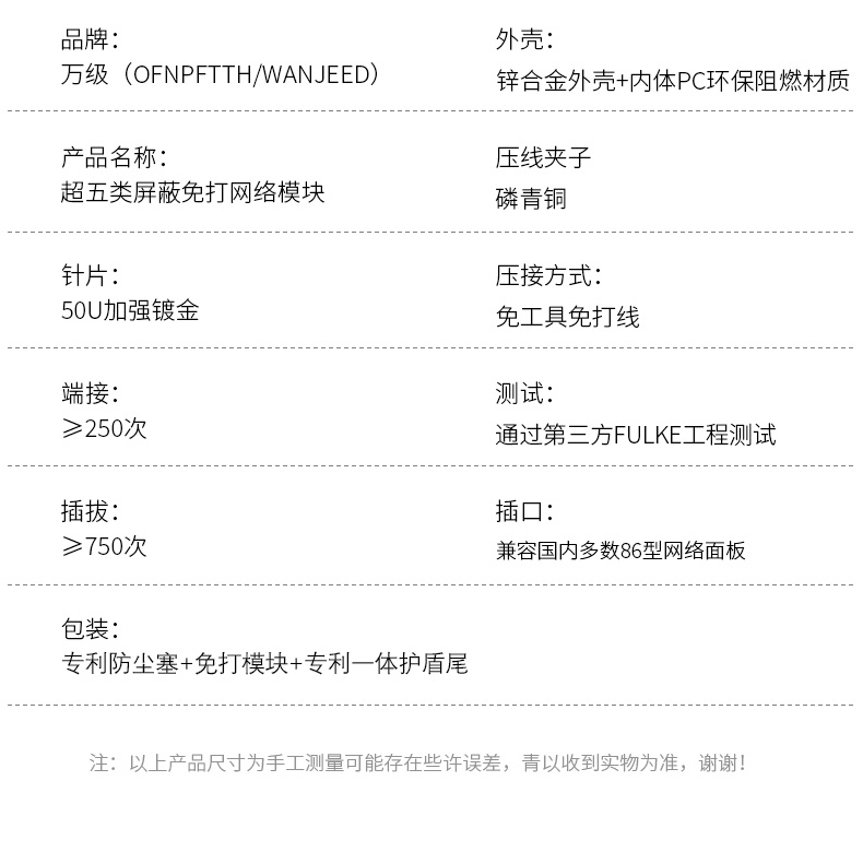 品 牌: 萬(wàn)級(jí)(WANJEED) 產(chǎn)品名稱: 屏蔽打線網(wǎng)絡(luò)模塊